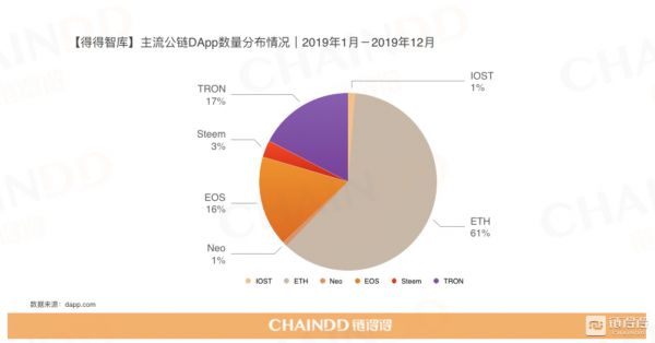 1、DApp 年度数量统计:ETH 占比维持领先,TRON 后来居上超越 EOS