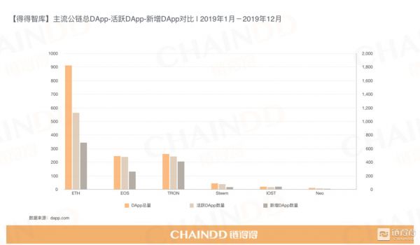 2、主流公链 DApp 新增与活跃度统计:TRON 表现强势