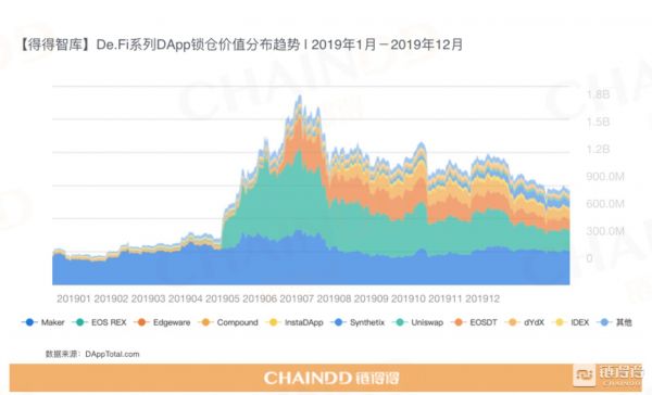 得得智库统计了 2019 年 De.Fi 系列前 15 的 DApp,将重点分析以下两大类: 借贷类与 DEX。