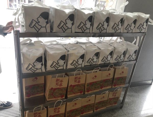 武汉汉街的喜茶门店给医务人员制作的爱心餐饮