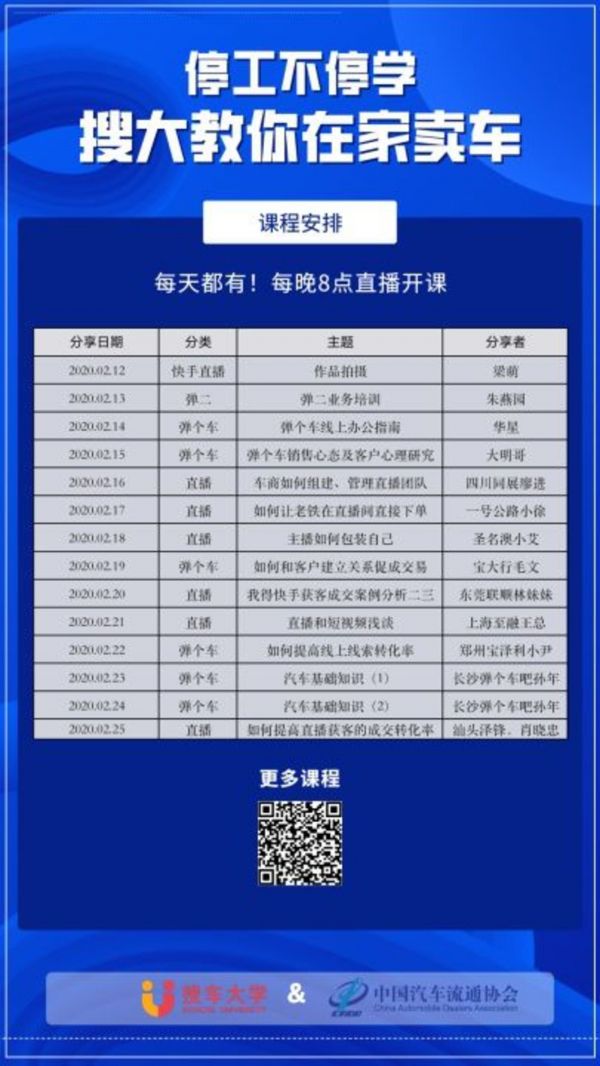 于是,朱景和他的团队正在加紧学习直播卖车的课程。《棱镜》了解到,包括大搜车旗下搜车大学等此前都推出了直播营销的培训课,该课程手把手教传统车商如何围绕直播平台来卖车。据搜车大学相关负责人介绍,疫情期间,车商学习的热情很高,课程的平均观看人数达到了1.8万,是此前课程平均学习人数的6倍。