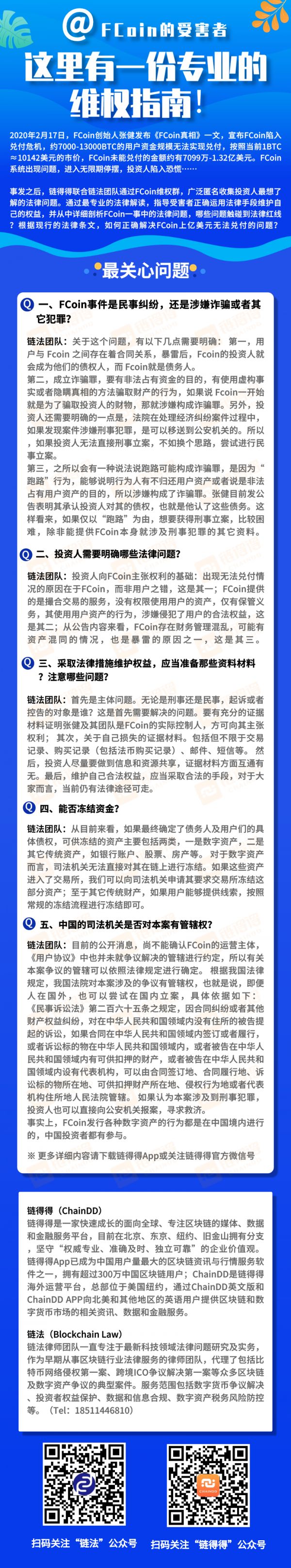 当然,如果认为本案涉及到刑事犯罪,投资人也可以直接向公安机关报案,寻求救济。事实上,FCoin发行各种数字资产的行为都是在中国境内进行的,中国投资者都有参与。(本文独家首发链得得App;作者:链法郭亚涛、链得得仇杨涛)