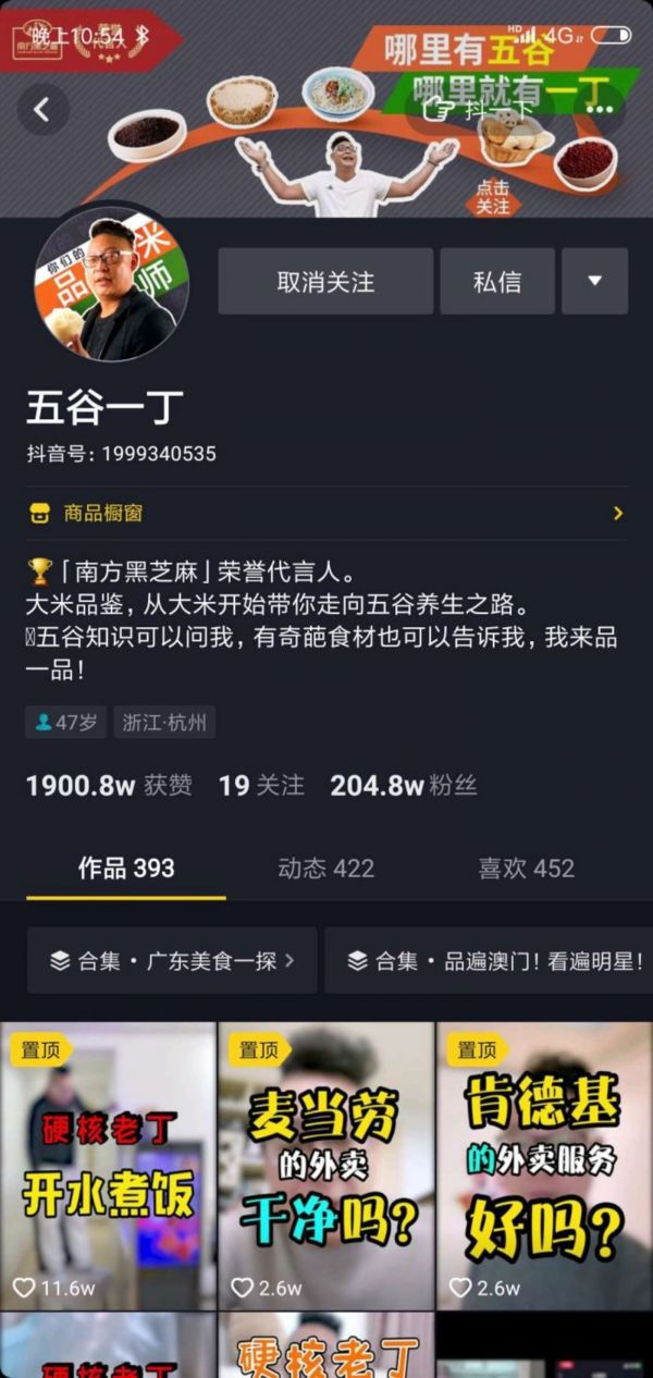 以黑芝麻糊为例。这家品牌主要与正善食品合作,而正善食品旗下的头部KOL正善牛肉哥为抖音顶级带货网红。虽然牛肉哥的账号只有600万,但2019年618,牛肉哥的淘宝带货量超过李佳琦,抖音达人带货GMV排名第一。
