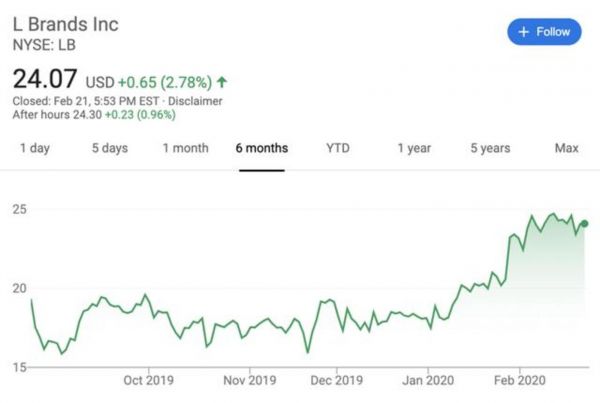 市场对于这次交易的反应也较为积极:自从L Brands要出售维秘的消息传出后,L Brands的股价就一路上扬,目前已经来到了近6个月的高位。
