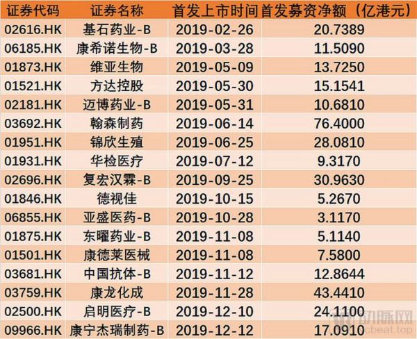 2019年国内大健康企业IPO解读:科创板活力足,药企多去港股,美股表现平淡