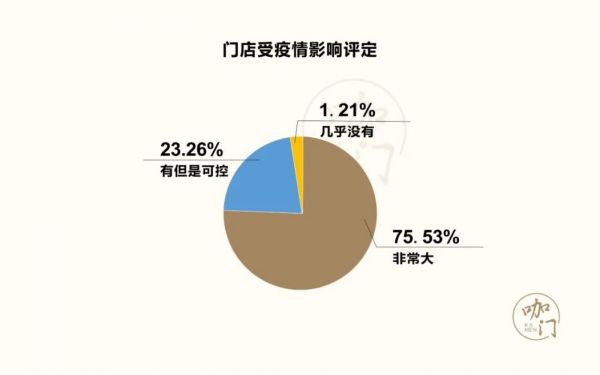 在对疫期的影响评定中,75.53%门店认为影响非常大,23.26的门店认为有影响但可控。