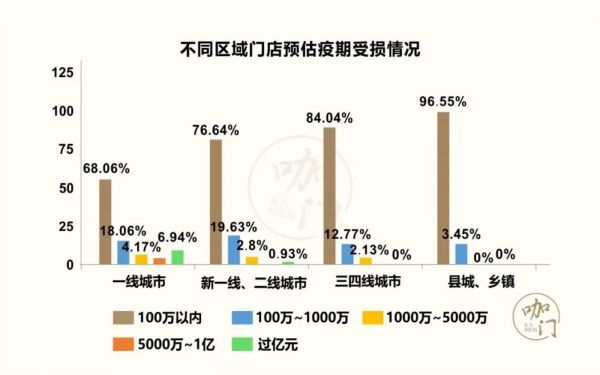 在县城、乡镇,96.55%门店损失在100万以内,在新一线、二线城市,19.63%门店损失在100~1000万,为所有区域占比最高。