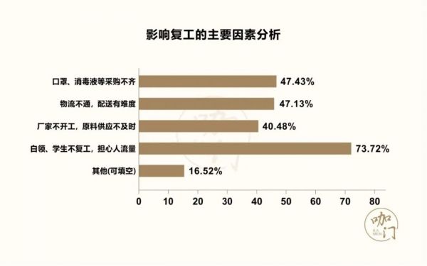 影响复工的主要因素上,超越物流配送、口罩等物资采购难题,人流量恢复情况是门店最大担忧。
