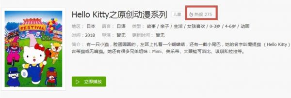 Hello Kitty之原创动漫系列》在爱艺奇上热度指数截图