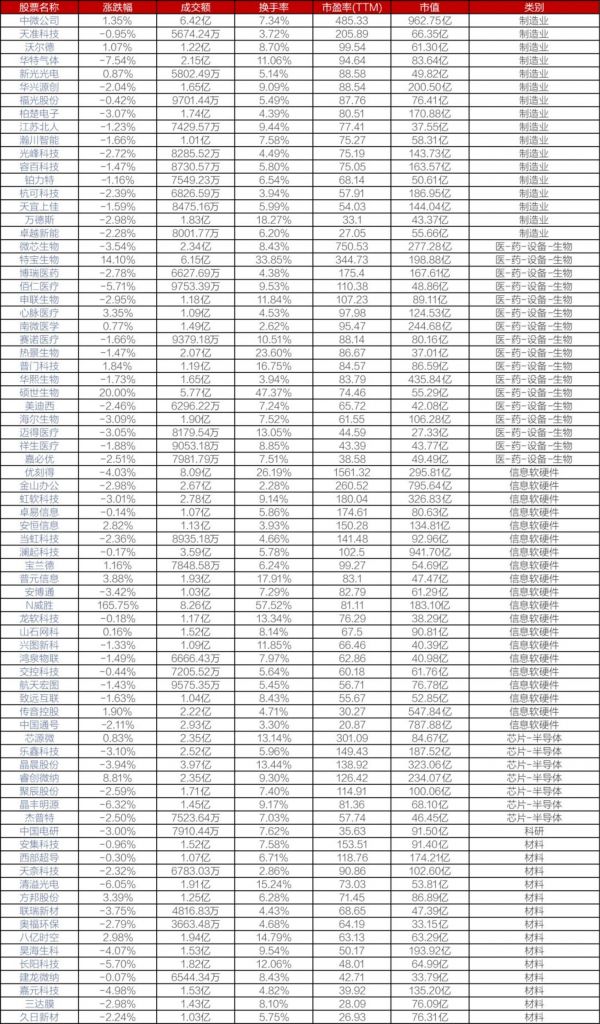 让我们看看科创板的上市公司结构组成,类别领域是冯斯基标注的: