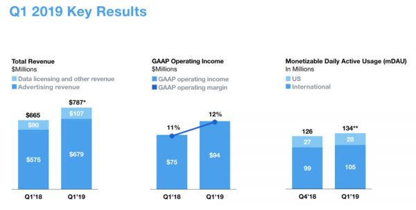 Twitter日前发布了2019年第一季度的财报,各项成绩都不错——