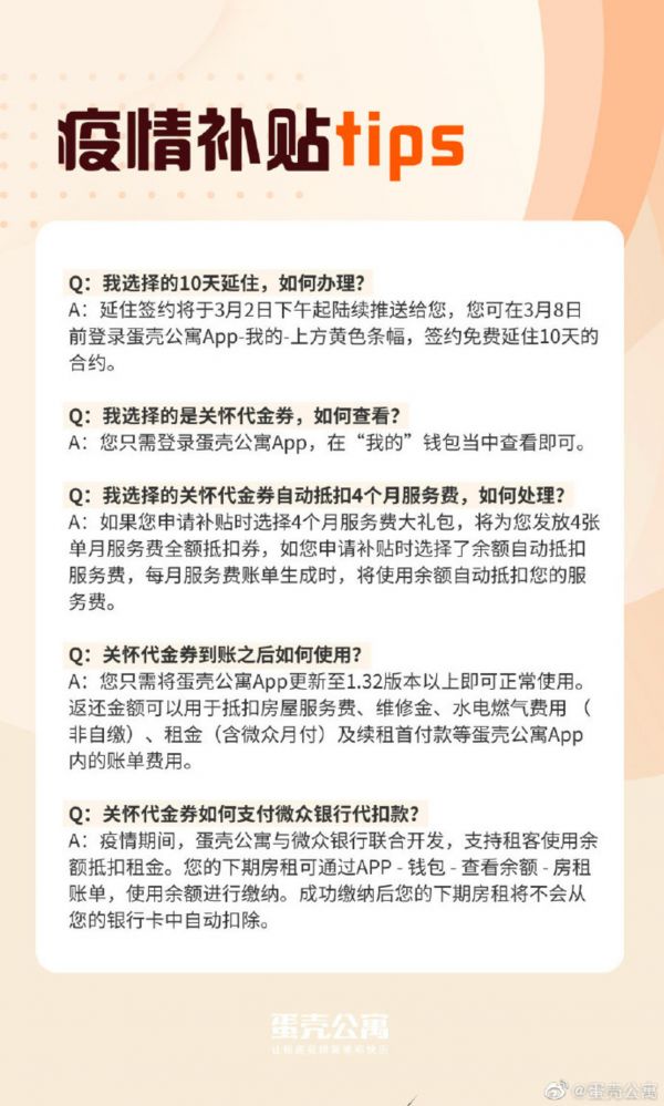 蛋壳公寓称疫情补贴已陆续发放,可交租但不可提现