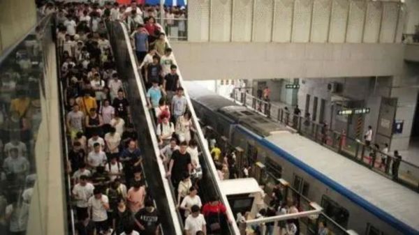 往常的早高峰,他需要排队等待 10 多分钟才能进站,然后再等上几趟车才能挤上去。