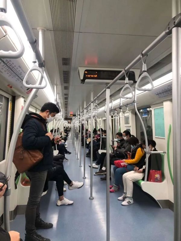 ▲疫情之下的地铁车厢
