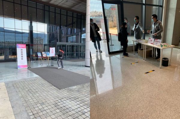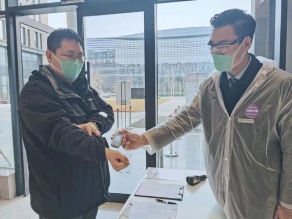 由于公司春节期间采购了一定的物资,制定了详细的策略,所以当王蓉到达联想办公室后,发现之前对于传染的担忧或许是多虑了。当她刚到公司停车场,保安带着手套,用体温计对车内的人进行体温测量,体温合格的才给贴上标示,放行。