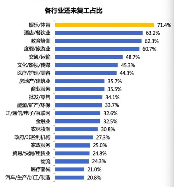 娱乐餐饮旅游复工比例垫底,仍有3成职场人未返城
