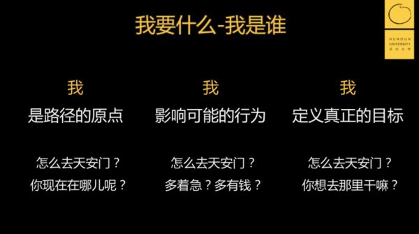 第一,我是一切路径的原点。不能说你想去天安门,但是不知道自己在哪里。你得有一个原点,才知道路径要怎么设计。