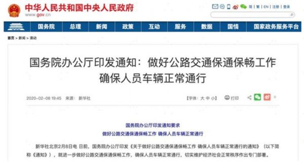 针对抗疫期间出现的矫枉过正现象,国家也在及时调整,以保障生产供应的顺利开展。如抗疫初期,各地擅自挖断公路,限制交通,对生产、养殖、商贸造成巨大影响。针对这个情况,2月8日,国务院办公厅迅速印发通知,并协调各部门层层落实,确保抗疫期间交通通畅,生产经营能够顺利进行。