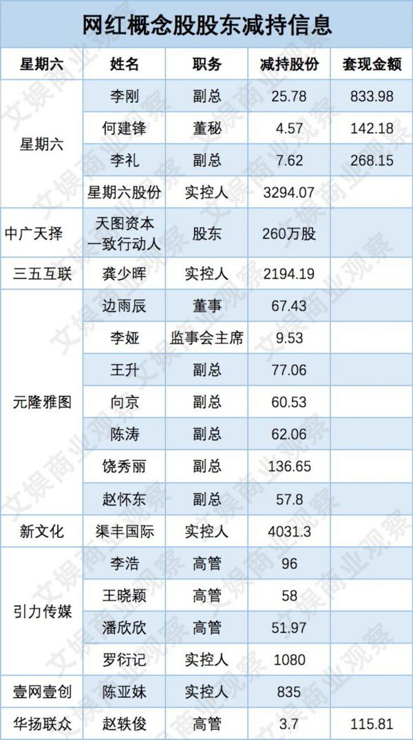 网红概念股减持榜:7家公司公布减持信息,股价高点“割韭菜”