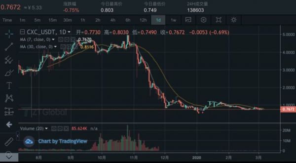 如今,CXC价格已由2019年10月的高点5.2美元跌至0.7美元,跌幅高达85%。“CXC已经凉了。”白永年感慨。