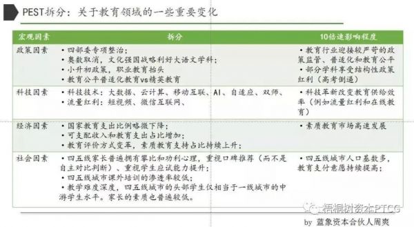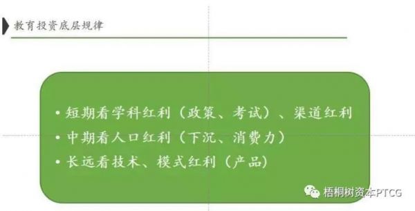 中期要看人口红利,不管是今天比较火的下沉市场,还是基于消费的升级,人口和经济层面的变化是发展的必然节奏,三四五线城市对教育投入比例增加,素质教育学科不断增长,以上一切都是很明确的趋势;