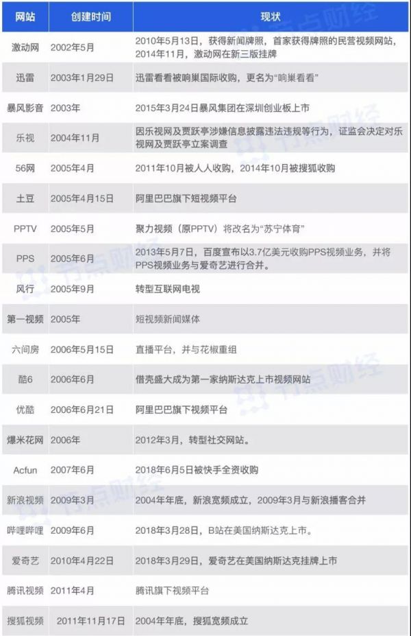 56网2011年被人人收购,之后又转手搜狐;优酷土豆相隔一年纷纷登录耐斯达克,合并之后,抱得了阿里巴巴的大腿;PPS视频业务被百度收购,之后和爱奇艺合并;PPTV则以延伸产业链之名,被苏宁并购;国内首家弹幕视频网站AcFun纳入了快手的麾下。当然还有乐视、暴风、风行等开始在硬件发力;爆米花网干脆直接转型社交网站。