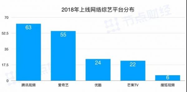 而内容生产的能力方面,腾讯和爱奇艺领先明显,优酷稍显势弱。2018年上线网综的统计结果显示,腾讯视频共计上线63个,爱奇艺55个,优酷24个,芒果TV 22个,搜狐视频6个。