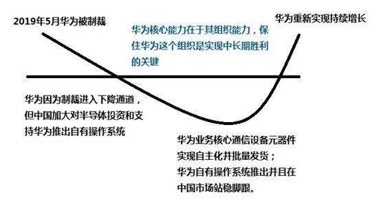 华为只要在核心的通信设备领域实现了元器件自主化,在终端产品领域推出自有操作系统,并且在中国市场站稳脚跟,那么这一天就是华为的下滑见底的时候,其后华为会从谷底持续回升。
