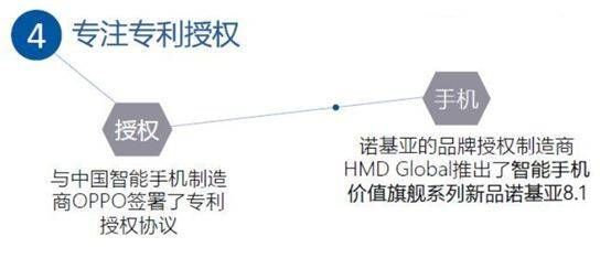 在诺基亚2018年的财报里面,专门提到了“专注专利授权”,而且把2018年和中国智能手机公司OPPO签署了专利授权协议作为主要业绩之一。