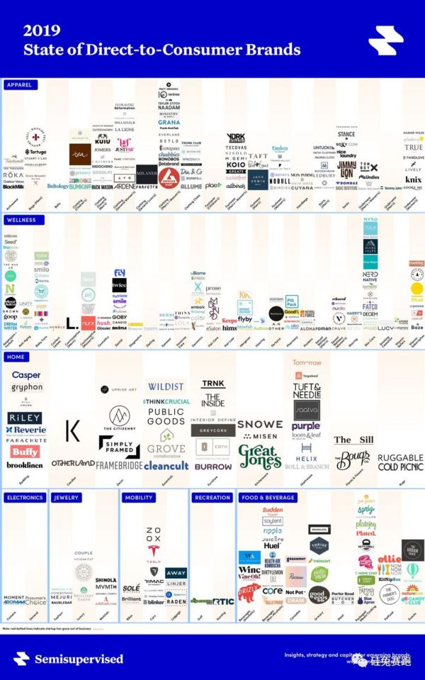 近几年,美国涌现了大量的互联网原生品牌,目前已有400多家DTC公司,衣食住行样样都有