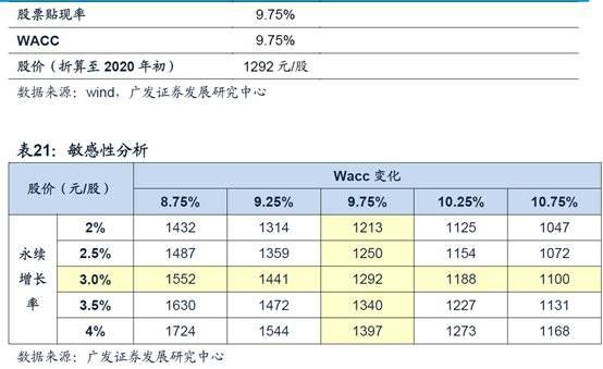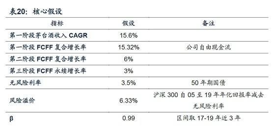下图是广发用自由现金流贴现法计算的茅台估值。