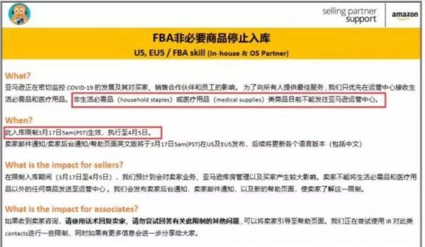 亚马逊FBA发布非必要商品停止入库的通知(图源:亚马逊)