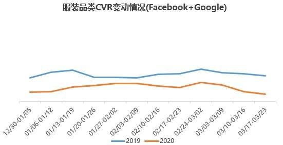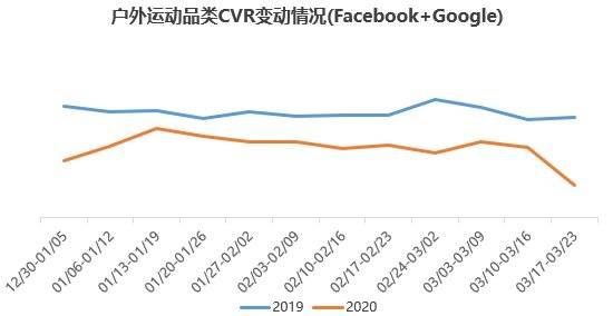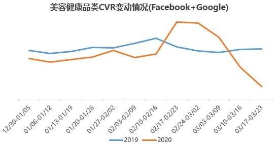 随着防疫措施不断升级,消费者被限制在相对单一的生活环境中(居家隔离),短期内所需要的商品将会减少。此外,出于对病毒传播、物流延迟等因素的顾虑,消费者也可能主动减少除生活必需品之外的网购。飞书深诺数据显示,由于疫情扩散,中国跨境电商广告CVR继续下行,已明显低于去年同期。