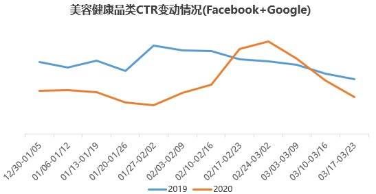 美容健康品类CTR与CVR均明显下降(数据来源:飞书深诺)