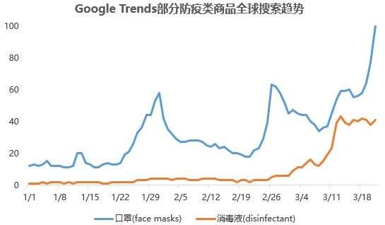 全球疫情爆发后防疫类商品搜索量剧增(数据来源:Google Trends)