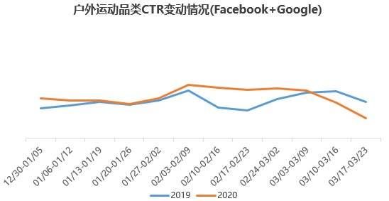 户外运动品类CTR与CVR均明显下降(数据来源:飞书深诺)