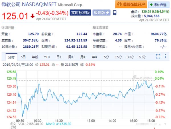 @新浪科技【微软开盘后市值一度破万亿:超越苹果成全球市值最高】4月25日晚间消息,微软股价开盘后涨4%,报130美元,股价创历史新高,市值一度突破万亿美元,超过苹果,成为全球市值最高的公司。