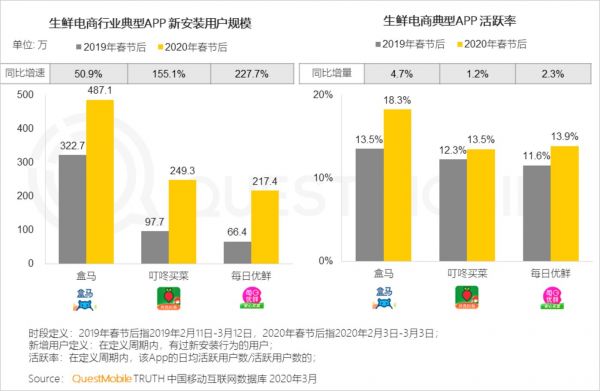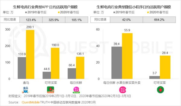 2.2 疫情掀起全民做饭热潮,盒马、叮咚买菜、每日优鲜凭借强大的供应链优势拉新效果显著,且用户更为活跃
