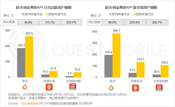3.1 疫情改变用户在实体店购物的习惯,购物配送到家的需求爆发,商超强大的供应链能力满足用户需求,超市到家典型APP用户规模增长显著