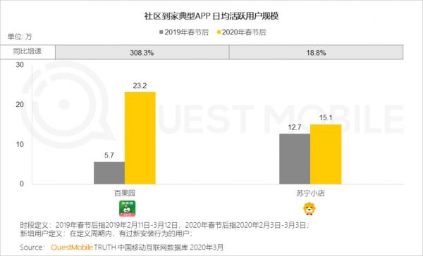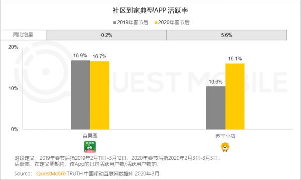 4.2 苏宁小店在各类社区附近开设门店,社区到家服务优势明显,疫情期间苏宁小店活跃率有所提高