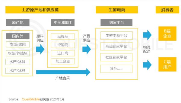 1、随着生鲜商品从菜场向商超、电商等渠道转移,叠加疫情期间的刚需,生鲜电商行业迎来用户规模增长,春节复工后30天,活跃用户规模接近7千万