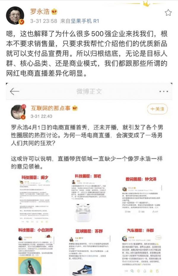 老罗的直播,就像是网贷套现的人,一个平台接着一个平台,透支自己的价值,很难想象在今晚直播之后,那些买了老罗产品的观众,在知道自己买的产品不是真正的低价,下周直播,还能有多少真为了和罗老师交朋友来花钱的?