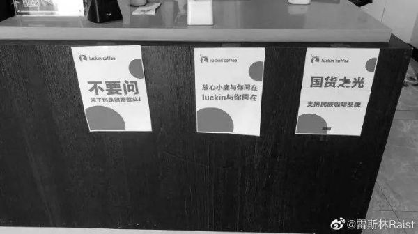 甚至一些瑞幸的门店,贴出了下面这种贴纸: