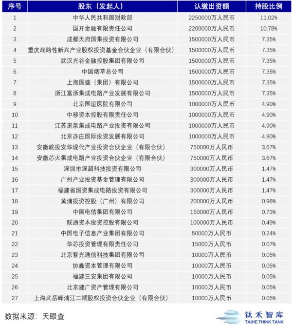 国家集成电路大基金二期股东名单