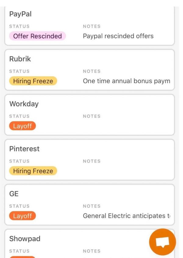 硅谷在线社区“一亩三分地”开发的疫情相关的网站上[4],就有大家众包提供的信息,不少大名鼎鼎的硅谷公司都挂上了橙色“裁员”和黄色“招聘冻结”的标签,甚至有公司把已经发出的offer都撤回了。