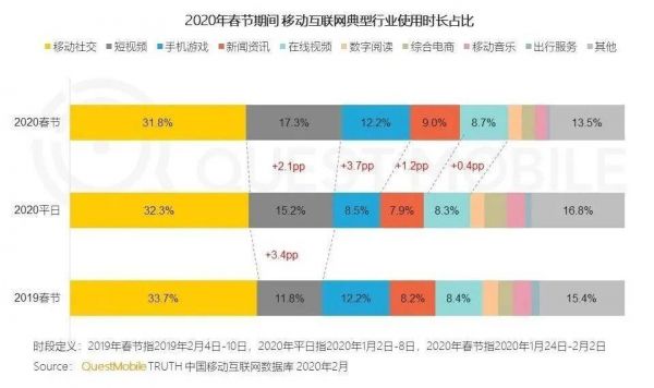 根据QuestMobile的统计,2020年春节期间,在线视频(长视频)占据了全体移动用户8.7%的使用时长,仅次于社交、游戏、短视频和新闻资讯。而且,上述数据尚未计入智能电视/智能机顶盒带来的用户时长。当然,长视频占据的用户时长已经趋于稳定,不像短视频还在激增;但是无论如何,这块流量是任何巨头都不肯放弃的。