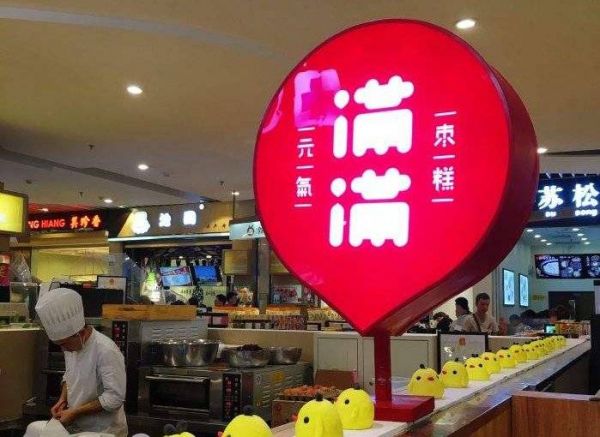我们有个客户叫“满满元气枣糕”,我们在观察他们一个地下一层店面的时候,就发现他们那个位置客流虽然很高,但是因为下客的电梯方向跟他们店面的朝向不是对着,结果就导致绝大部分人不知道那里有一个枣糕店,这就是展示不足。怎么做呢?那就要做工作,你正面的展示量不足,那就做一个侧面展示,在店铺门头做一个侧招,就可以让下电梯的客人看到了。