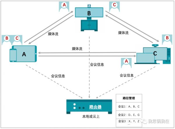 例如A、B、C开会,路由器把B和C的地址告诉A,让A直接通过公网把媒体流打包好后送至B和C,不再需要经过昂贵的MCU了;