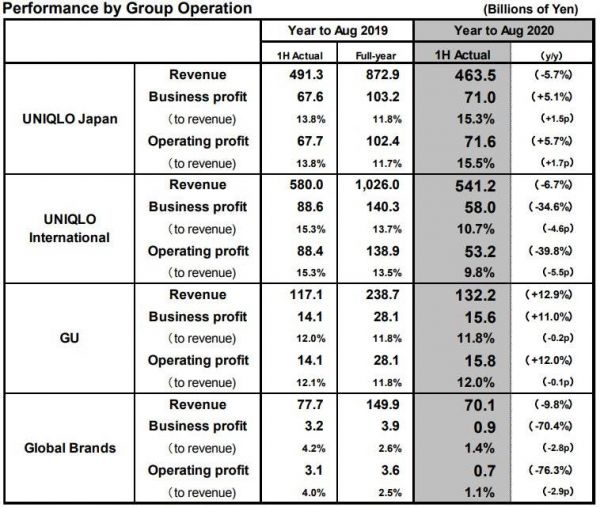 图为迅销集团上半财年主要业绩数据,点击查看更清晰