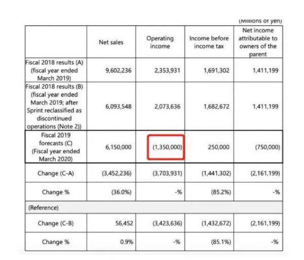 投资界(ID:pedaily2012)消息,4月13日晚间,软银发布2019财年业绩预测,首次公布了一组数据:基于市场环境恶化的判断,预计本财年经营亏损1.35万亿日元(约合人民币880亿),预计本财年净亏损7500亿日元。